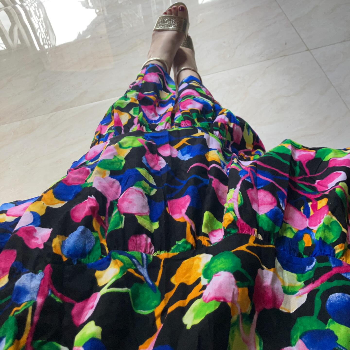 Isn’t this cute too?! It’s a cute pink even up close, but from afar, it’s even more ridiculously cute. It’s pink, but not too sweet thanks to the flowing, elegant design. The three-tiered skirt was made using a generous three yards of fabric. I can’t wait for spring! 😁