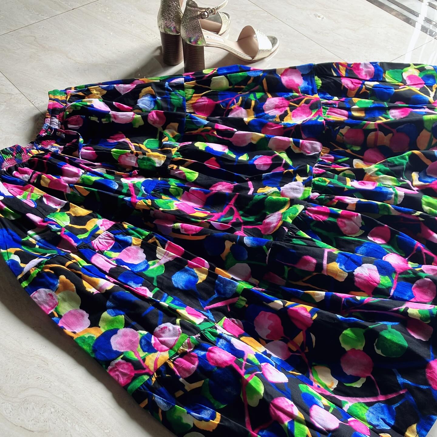 3段のティアードスカートは、布をたっぷり3ヤード使って作ってるんですよー。